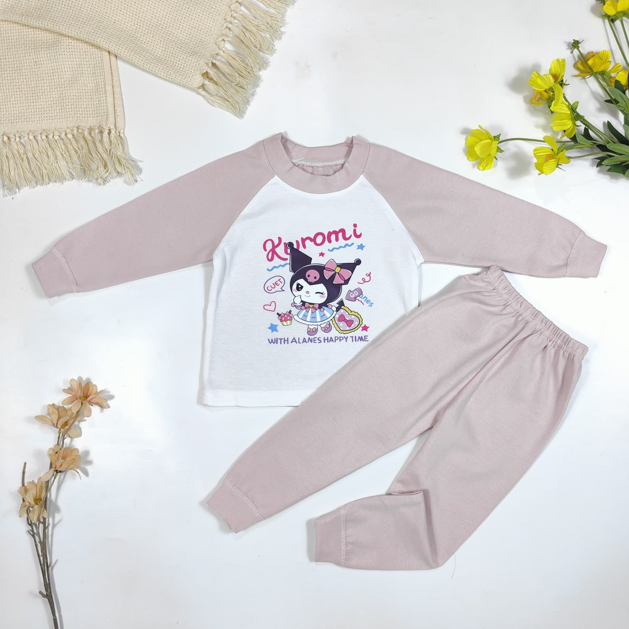 Setelan set girls kuromi happy cute adalah pakaian anak yang nyaman dan manis untuk usia 1-4 tahun. Terbuat dari bahan kaos lembut yang pas untuk si kecil, tersedia dalam warna peach, pink, dan ungu muda. Desain yang cute dan praktis ini cocok untuk digunakan sehari-hari maupun acara kasual. Dapatkan harga lebih hemat dengan pembelian lebih dari 6 setel!